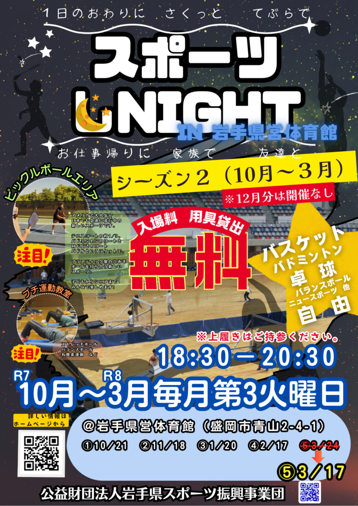 次回3/17(火)18:30~20:30 岩手県営体育館にて開催!!