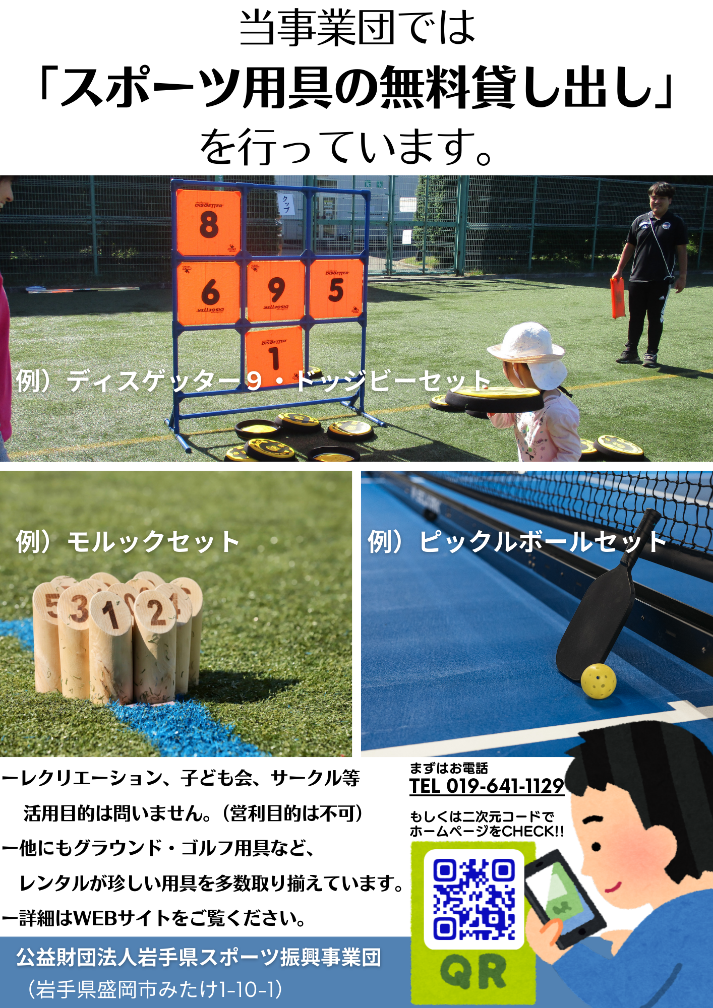 【無料】令和8年度スポーツ用具貸出について 2026年03月17日 申請書のダウンロードはこちらから ①R8スポーツ用具(貸出について)ダウンロード ②R8スポーツ用具(貸出用具一覧表)ダウンロード ③R8スポーツ用具(貸出用具一覧写真)ダウンロード