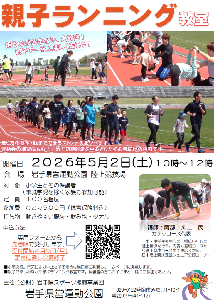 県営運動公園 陸上競技場にて「親子ランニング教室」を開催します!
