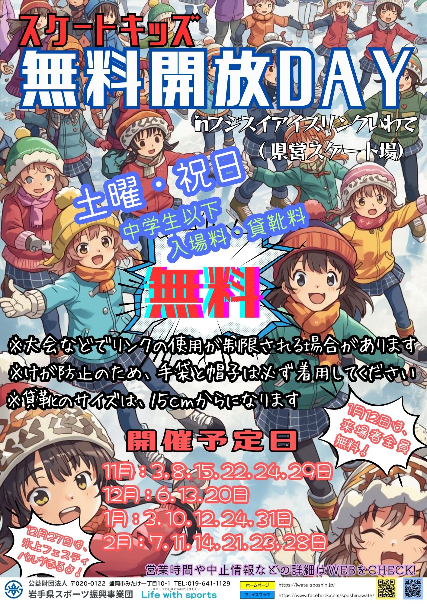 毎年大人気の県営スケート場無料開放イベントのお知らせです!