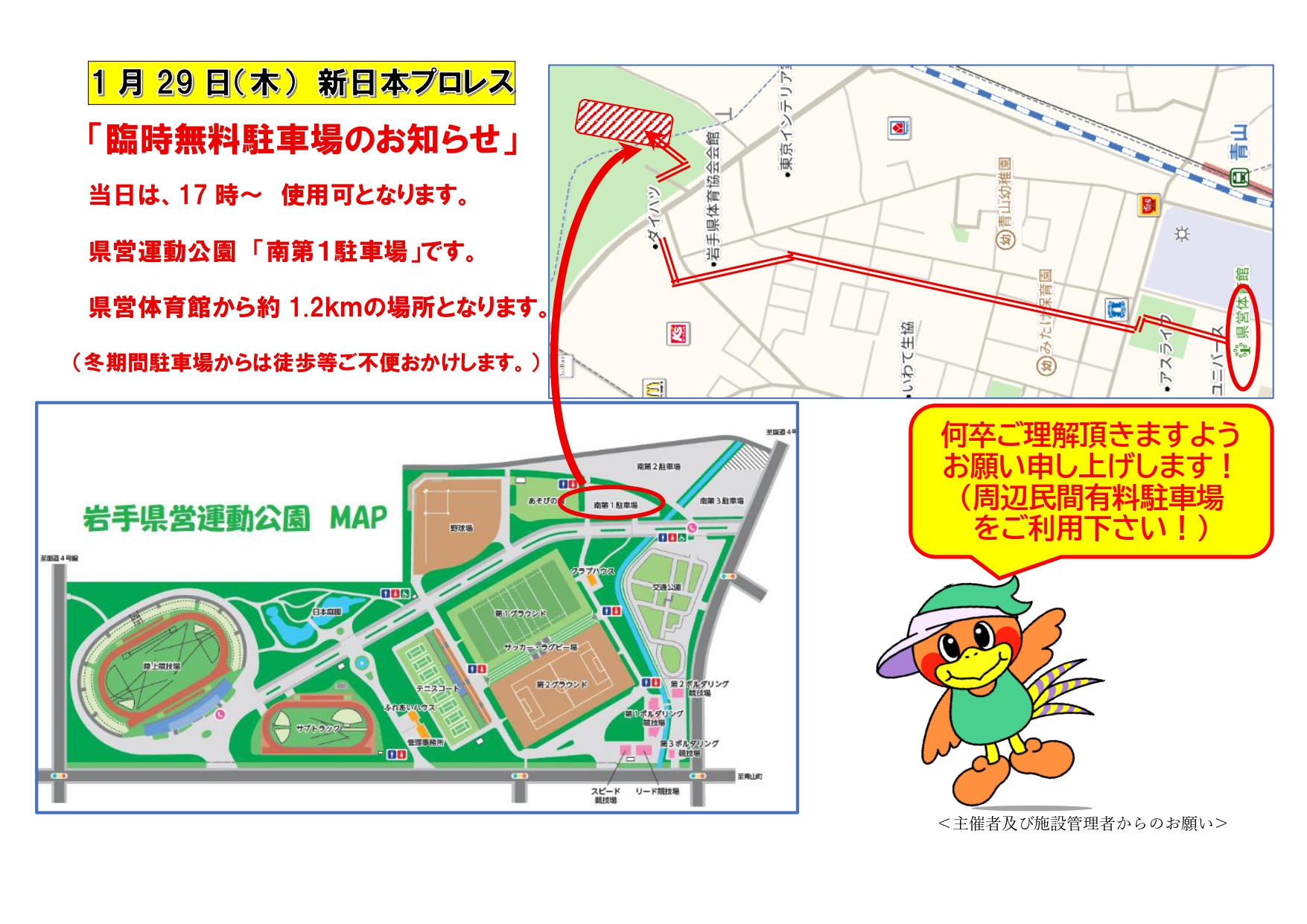 1/29(木)プロレス興行開催時の駐車場の利用について
