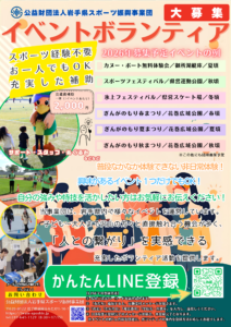 いきいき健康体力UP事業 ①実施要項(PDF) ②申込書(WORD) スポーツ用具の貸出 ↓のリンクをクリック↓ 【無料】令和8年度スポーツ用具貸出について イベントボランティア ①募集要項 ③こちらをタップして友だち登録 ③メール登録 to-nakamura@sposhin.echna.ne.jp ④申込書(エクセル) 令和8年度 県民スポーツ・レクリエーション祭 現在準備中